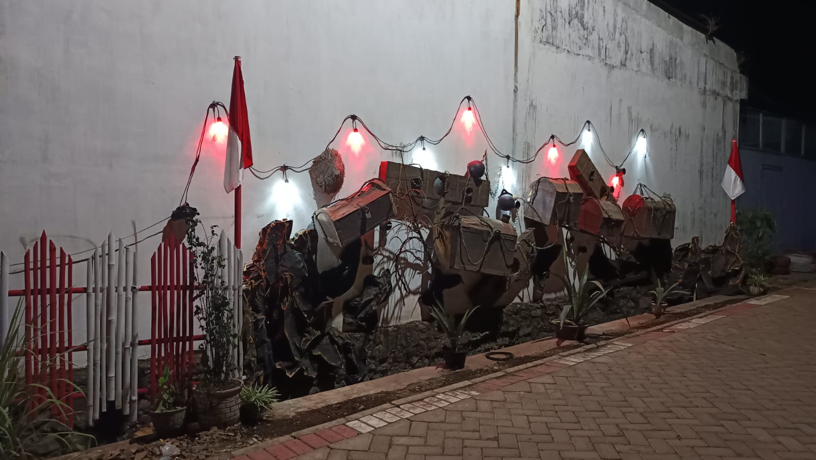 “Jadi kreasi ini hasil olah pikir dan kolaborasi antara ketua RW mas Mamat dengan warga termasuk ketua RT nya, dan para pemuda, untuk menyiapkan diri dalam lomba lingkungan memperingati HUT RI Ke 80 ini mas,” Ungkapnya.