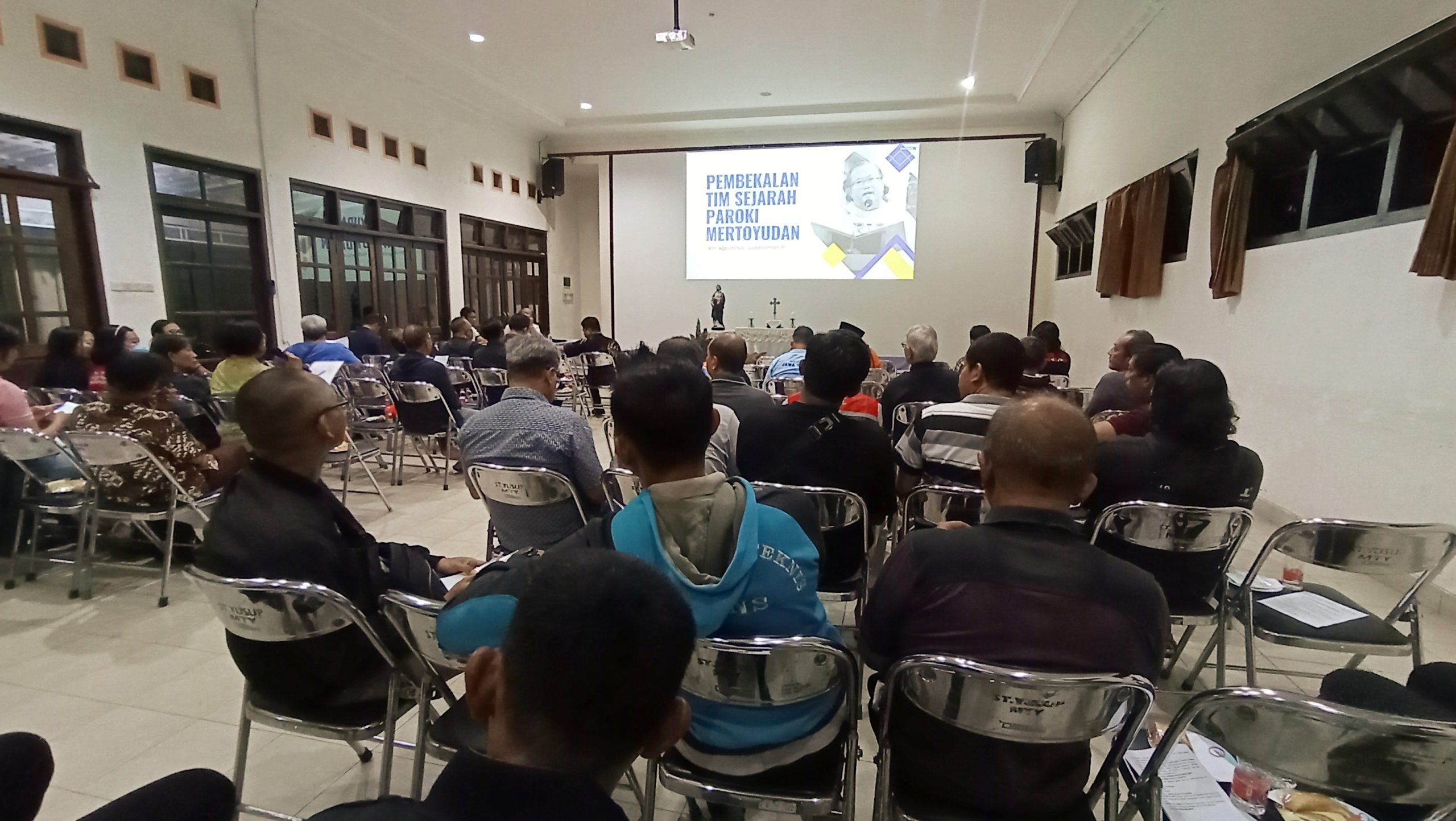 Pembekalan yang dimulai pukul 18.30 WIB ini menghadirkan Romo Agustinus Sudarisman dari Paroki Sumber, Muntilan, sebagai narasumber. Acara diikuti oleh tim penyusun buku sejarah, Dewan Pastoral Paroki Harian (DPPH), dan para ketua lingkungan se-Paroki Santo Yusuf Pekerja Mertoyudan.