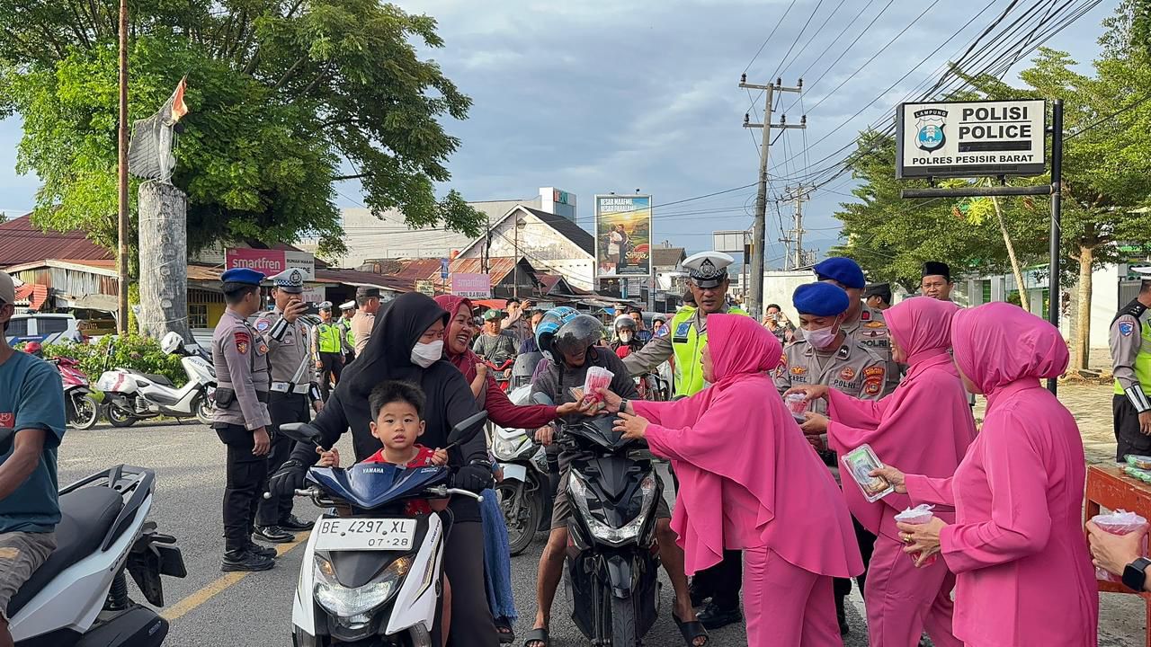 Pesisir Barat – Dalam rangka meningkatkan kepedulian sosial kepada masyarakat pada Bulan Suci Ramadhan 1447 H, Polres Pesisir Barat melaksanakan kegiatan pembagian takjil kepada masyarakat dan pengguna jalan pada Jumat, 27 Februari 2026, sekitar pukul 17.00 WIB, bertempat di kawasan Tugu Tuhuk, Kecamatan Pesisir Tengah, Kabupaten Pesisir Barat.