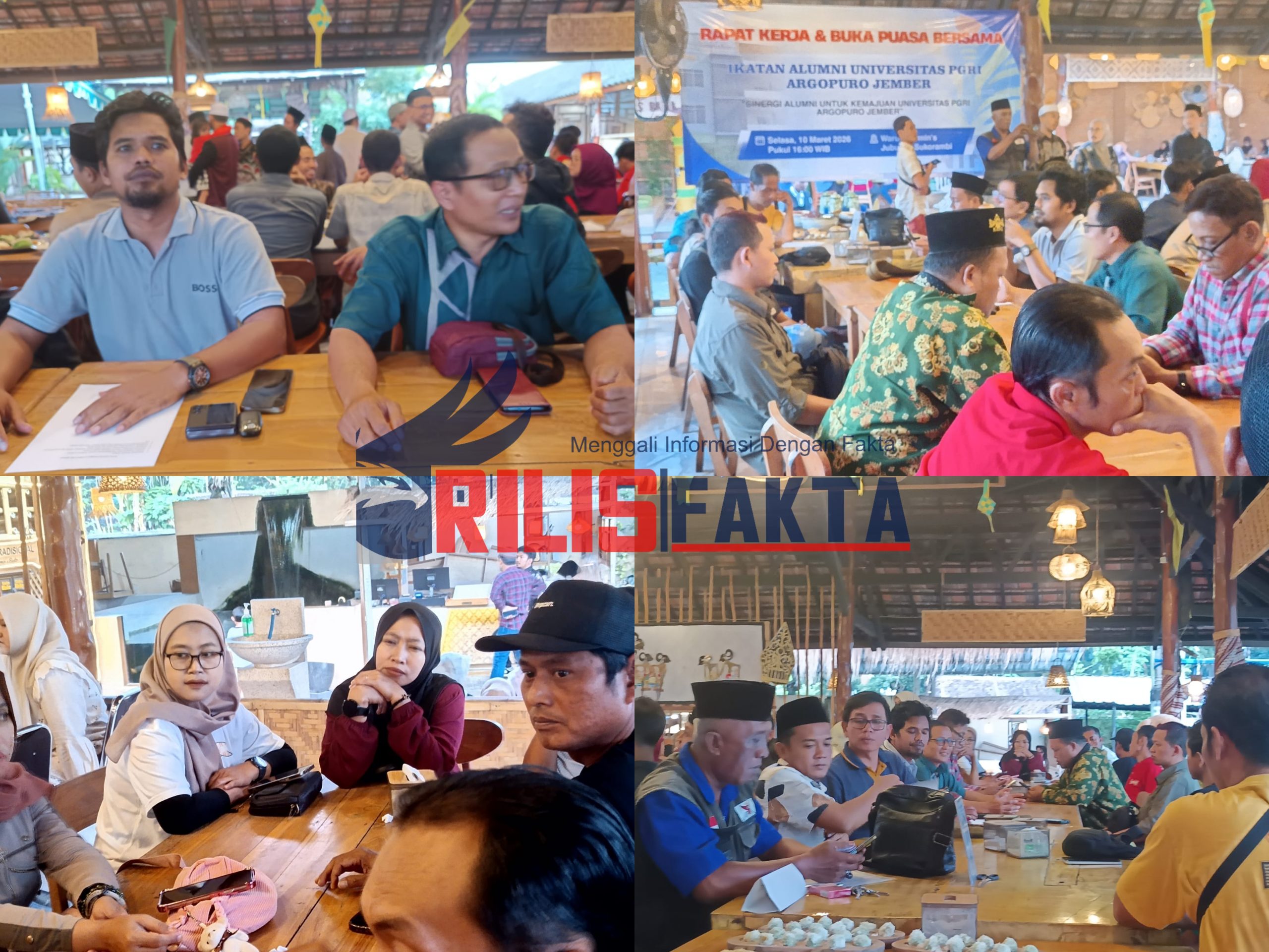Jember, rilisfakta.id — Dalam upaya memperkuat kebersamaan dan kontribusi nyata bagi kemajuan almamater, Ikatan Alumni Universitas PGRI Argopuro Jember (IKA Unipar) menggelar Rapat Kerja sekaligus Buka Puasa Bersama dengan mengusung motto “Sinergi Alumni untuk Kemajuan Universitas PGRI Argopuro Jember”.