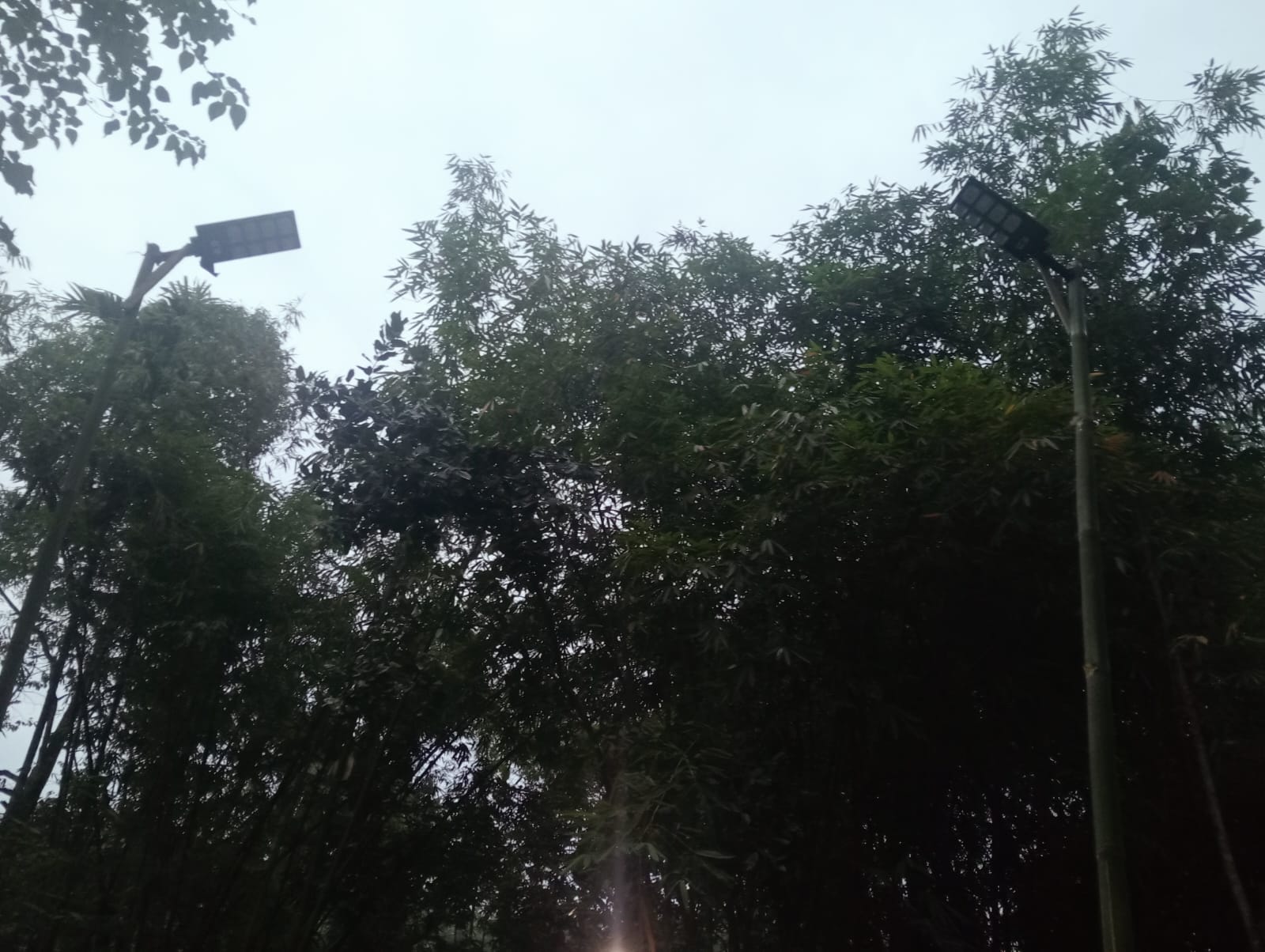 Kini, janji tersebut benar-benar terwujud. Lampu tenaga surya lengkap dengan tiang penyangganya telah terpasang dan menyala terang, hasil gotong royong warga dari kedua dusun yang turut membantu proses pemasangan.